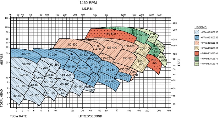 - Maximum speed varies between 1500rpm and 3600rpm dependant on pump size