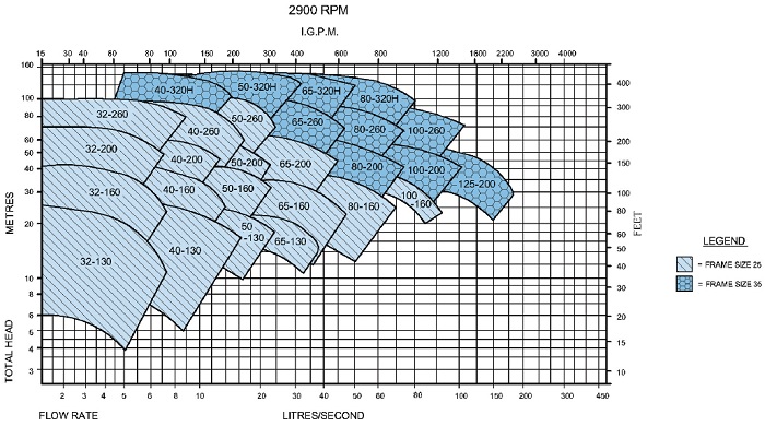 - Maximum speed varies between 1500rpm and 3600rpm dependant on pump size