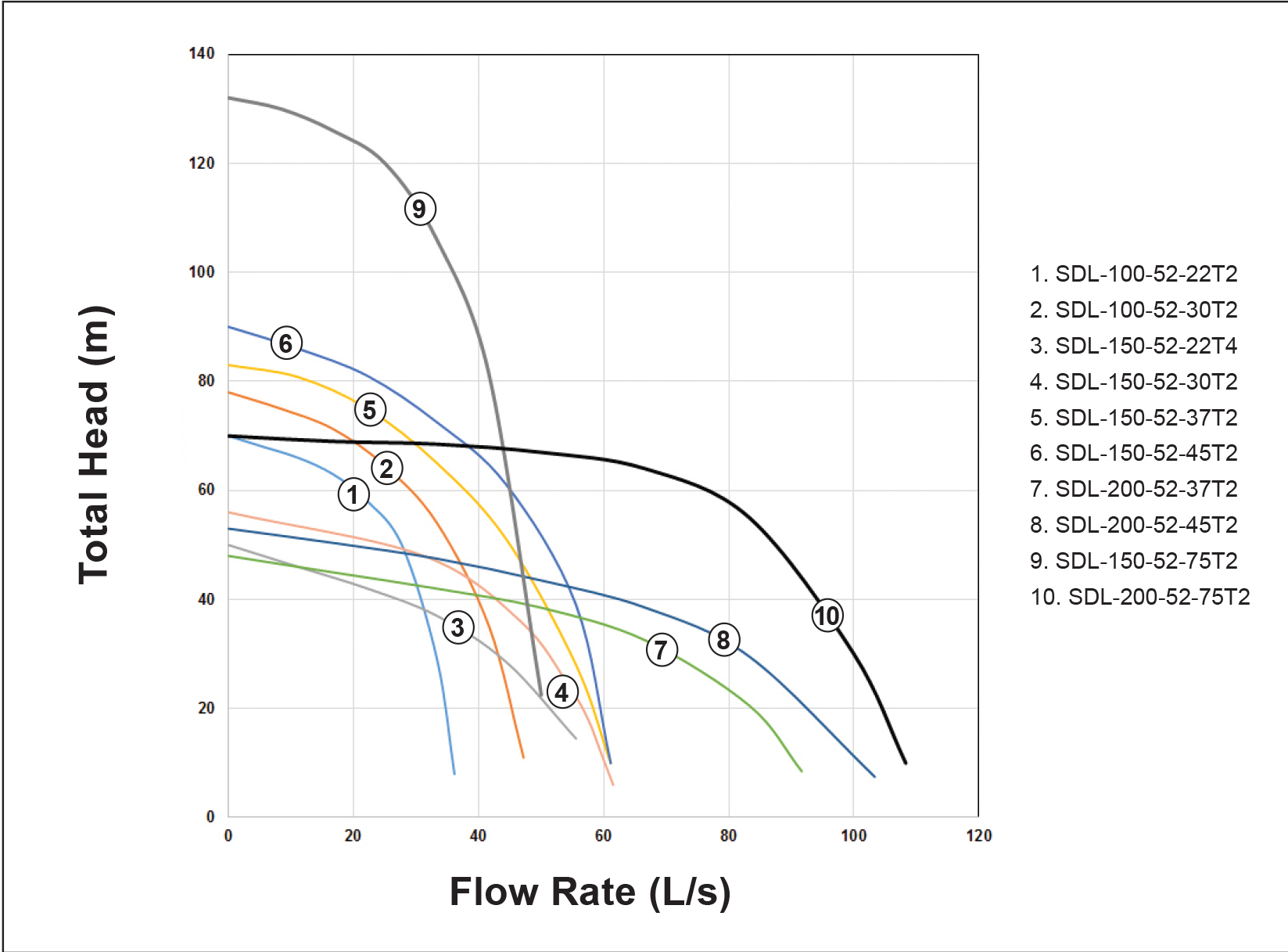 | Model Number | Discharge (mm) | Power (kW) | Voltage (V) | Cable (m) | Max Flow (L/s) | Shut-Off Head (m) | Pump Weight (kg) | Max Solid (mm) | Rated Current A (415 V) |